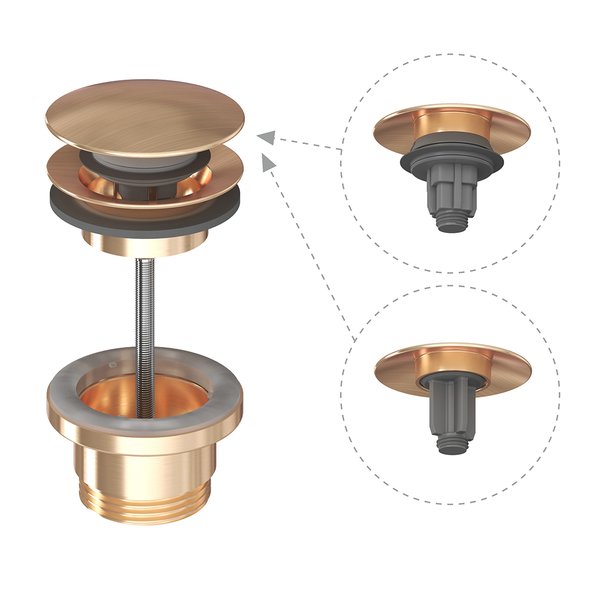 | X01841 | Kraanikausisifooni kork ClickClack mehhanismiga/fikseeritud, Rose Gold Brushed | 69,00 | |