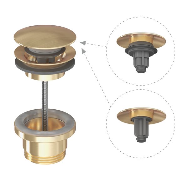 | X03051 | Kraanikausisifooni kork ClickClack mehhanismiga/fikseeritud, Gold Brushed | 69,00 |