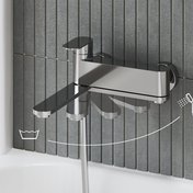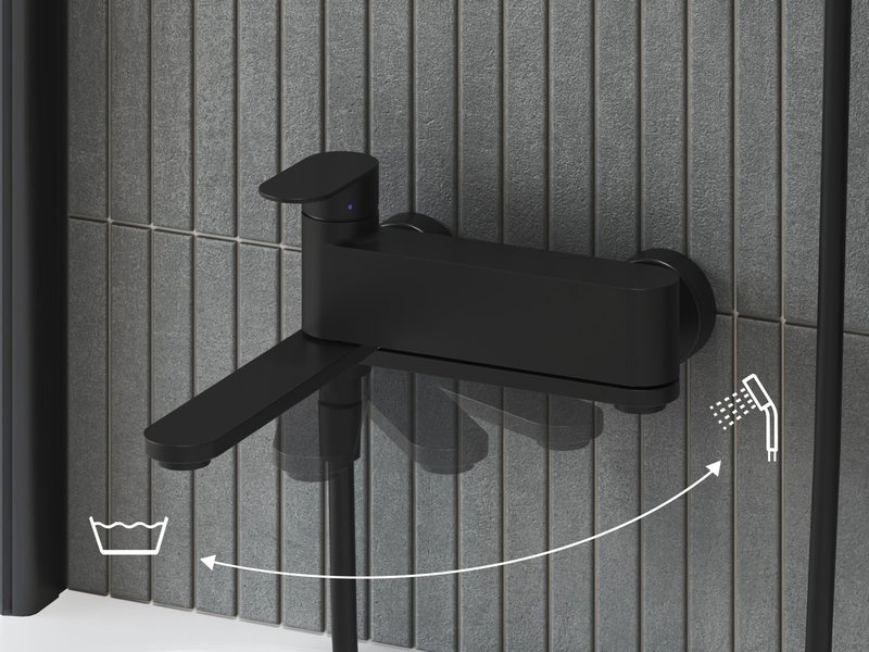 Geniaalne vannitoasegisti on seina poole keeratava tilaga, nii et see ei võta vannitoas tarbetult ruumi. Kui lülitate vee selles asendis sisse, hakkab dušš voolama ja klassikalises asendis saate vanni täita.