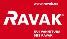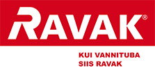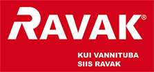 RAVAK-i logo on värvikombinatsioonis punane (C 10, M 100, Y 100, K 0; Pantone 186 C) ja valge (C0, M0, Y0, K0). Alla saab selle laadida jpg-vormingus.