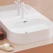 Valamu on mõeldud lauaplaadile või kapile asetamiseks. Vorm on seinale panemiseks valmis. Selle variandi ümarus on peen ja tasakaalustab loomulikult vannitoa teravate nurkade karedust.