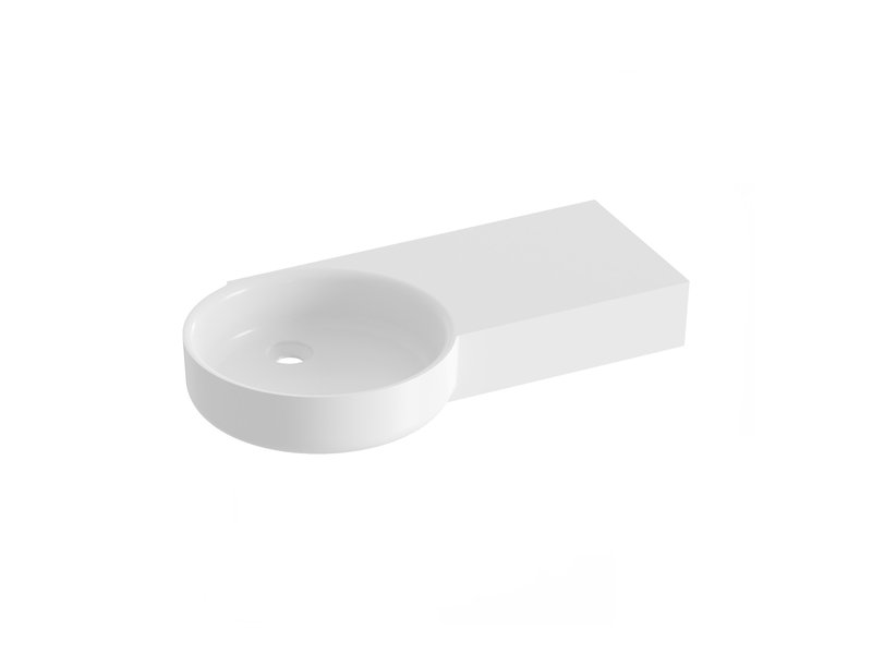 ARC valatud marmorist mööblivalamu seinale või vannile paigaldamiseks, ilma ülevooluta. Valge viimistlus. Ilma auguta – kombineerimiseks varjatud kraanikausisegistiga.